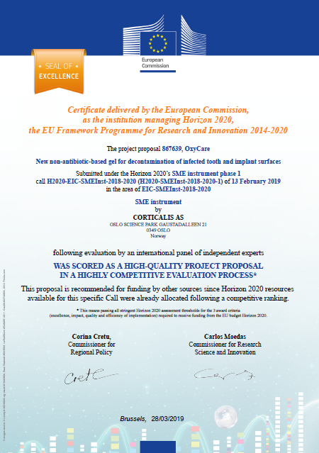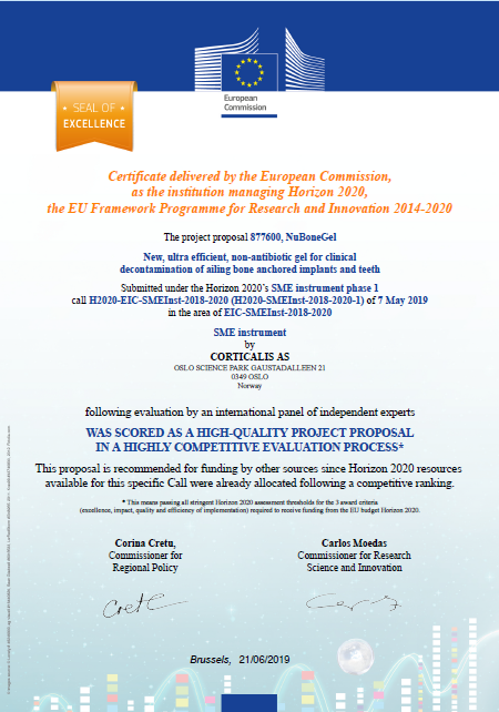 Corticalis has received significant support from the EU and the research Council of Norway for its innovative development work. The company has been honored three times with the Seal of Excellence from the European Commission.